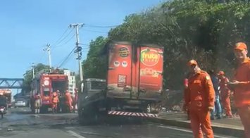 Caminhão com polpas de frutas pega fogo e fica totalmente destruído na BR 316 em Teresina