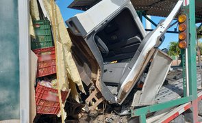 Acidente entre caminhões e um carro deixa mulher ferida na Ponte do Tancredo Neves
