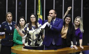 • Eduardo Bolsonaro manda 'banana' à deputadas da oposição que repudiaram fala do pai