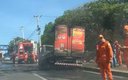 Caminhão com polpas de frutas pega fogo e fica totalmente destruído na BR 316 em Teresina